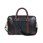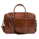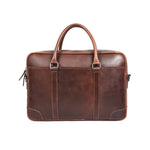 The Hayward 17" Leather Office Bag combines classic vintage design with modern functionality. Handcrafted from premium European cow leather, it features durable YKK metal zippers and heavy-duty precision stitching. Cushioned inner compartments and multiple pockets keep your essentials organized and protected. Corrosion-free brass fittings and antique hardware enhance its timeless look. The adjustable, detachable padded shoulder strap and round handle provide comfortable carrying. Perfect for professionals seeking elegance and durability.