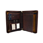 Crafted from premium European cow leather, this travel organizer blends elegance with functionality. Its compact yet spacious design fits an iPad Pro, notebook, and stationery essentials with ease. The cushioned inner walls and multiple compartments keep items secure and well-organized. Brass fittings and YKK zippers add durability and vintage charm. Perfect for professionals on the go, this sleek folder completes a minimalist business look with refined craftsmanship and lasting quality.