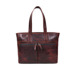 Carry your daily essentials in style with the Manhattan Leather Tote. Made from hand-stained European cow leather, it matures beautifully with time. The top-zip main compartment offers secure storage, while inside organizer pockets keep your phone, tablet, and accessories in place. A padded sleeve holds laptops up to 15". Front and inner zippered pockets add functionality. Perfect for work, school, or daily errands with refined elegance.